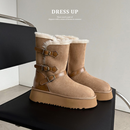粗跟方头羊皮复古弹力靴瘦瘦靴短靴大码34-42
